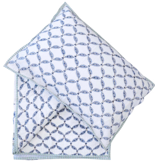 Natasha White and Blue Quilt and Pillowcase Set