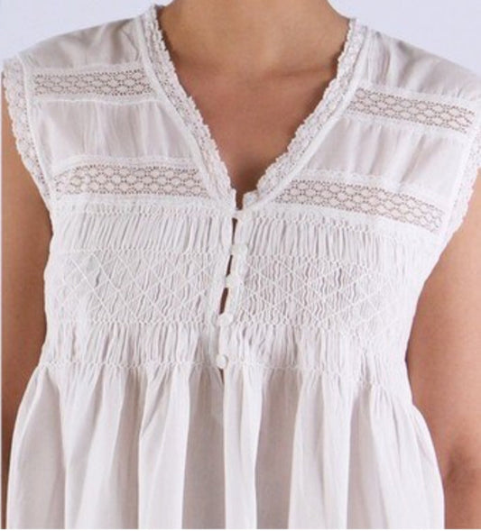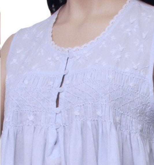 Nightwear Meg White Cotton Nighty with Blue Smocking