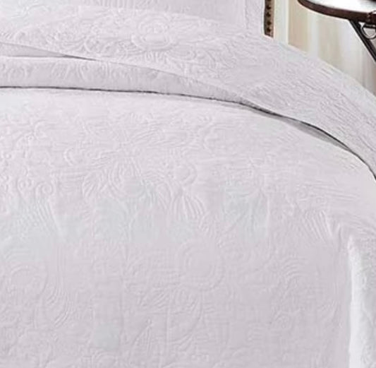 Classic White Quilt or Bedspread and Pillowcase Set