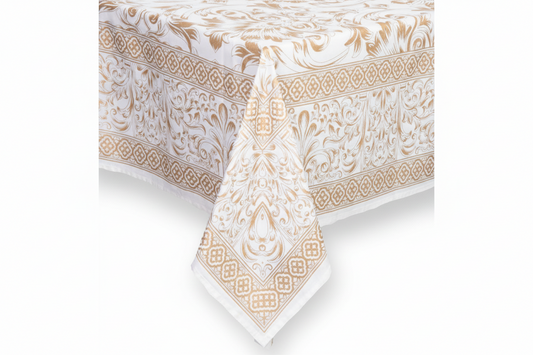 Gold Screen Printed Tablecloth 270x150cm - 8 Seater Cotton Table Linen
