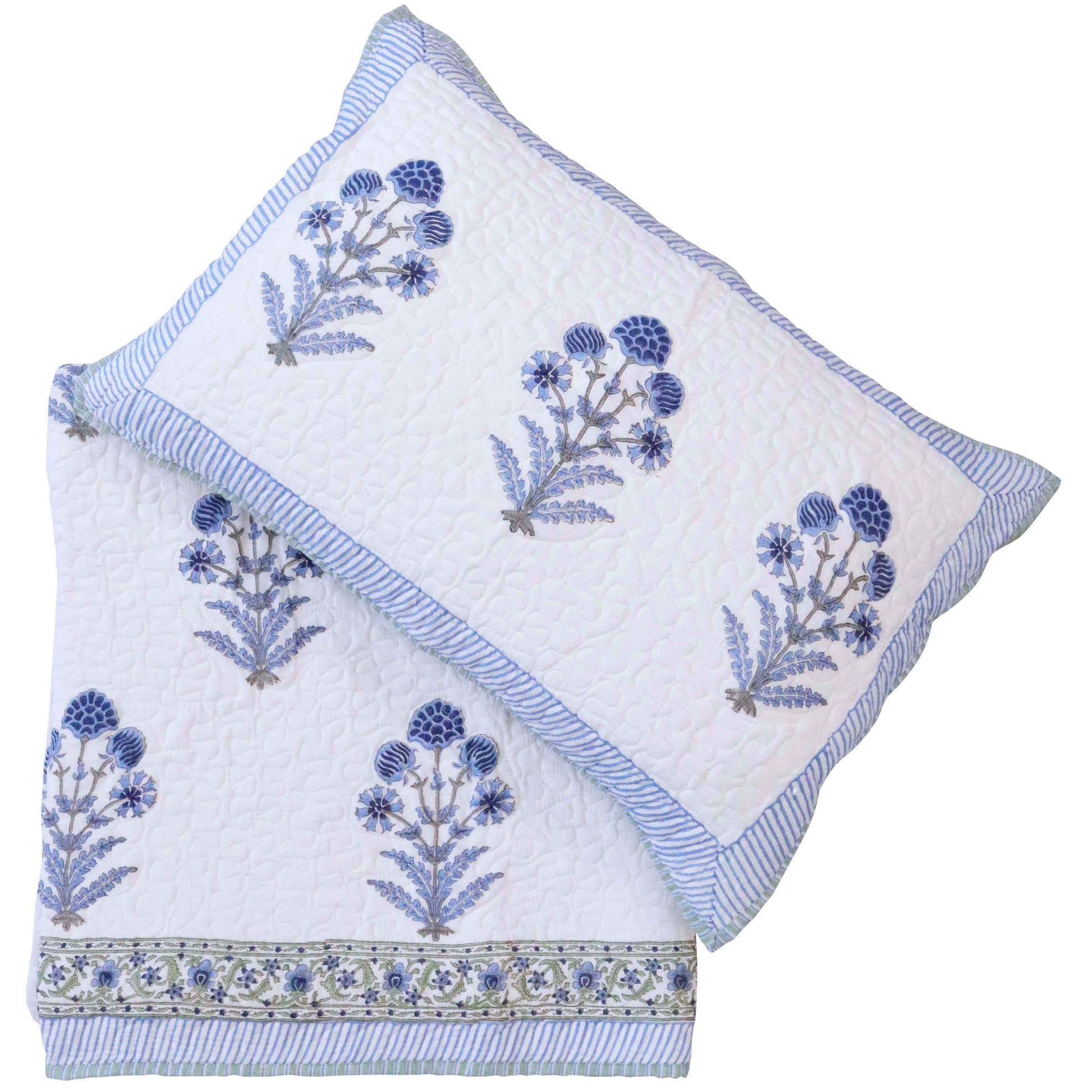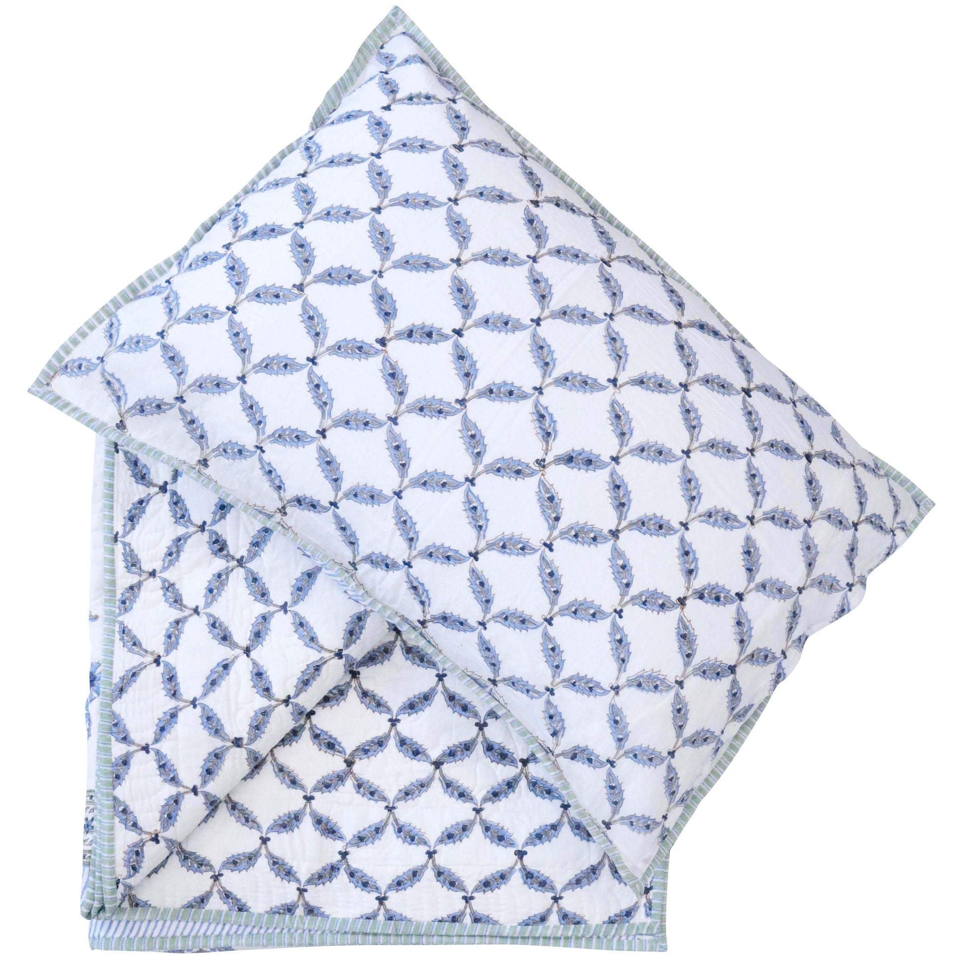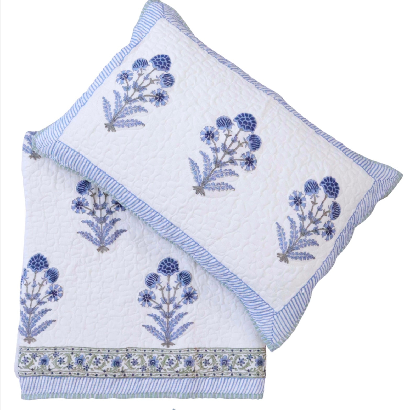 Indulge in the luxurious softness of our Laura Quilt in Pastel Blues and white. The cotton voile material and hand-blocking print create a unique and elegant look for your bedroom. The art of Block printing can vary from item to item therefore giving this quilt its uniqueness and individual beauty.