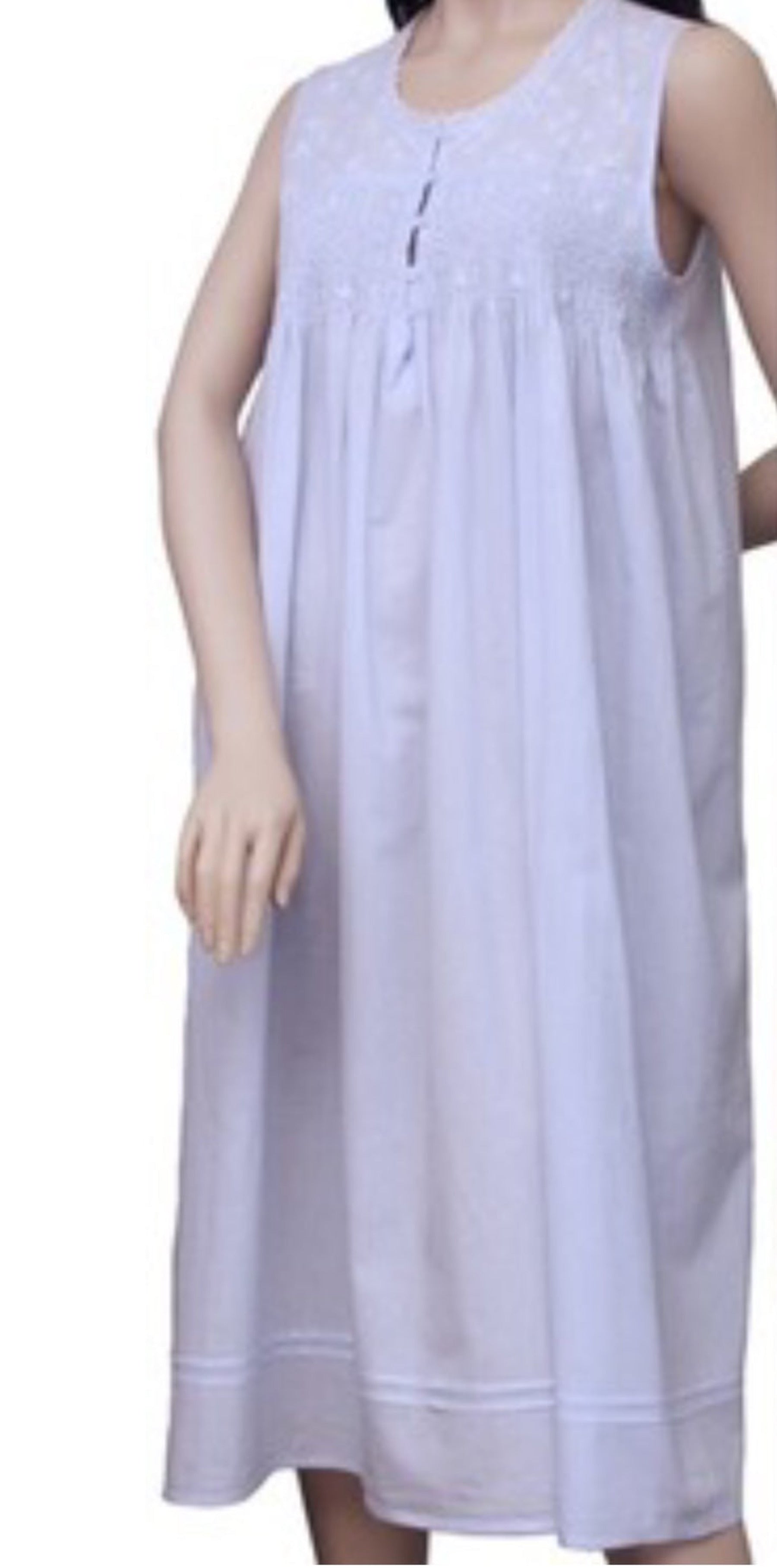 Look and feel your best in our Hanna Soft Blue Cotton Nighty. Its luxurious voile cotton fabric and beautiful embroidery offer soft comfort and style. Whether a special night or just for a good night's sleep, this nighty is sure to make you feel pampered!
